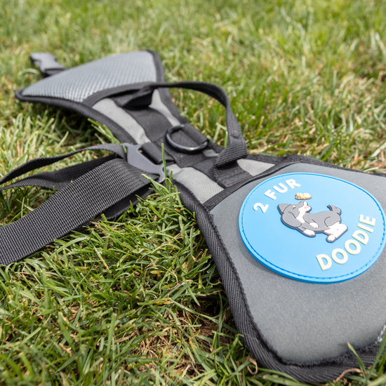The 2 Fur Doodie Harness is a great fit on my energetic weimaraner! Easy to put on and it was quite comfortable for her. The harness helps me out too as she likes to tug. And the ability to have my dog carry her own "doodie" is a big help! Frees my hands up, especially helpful for our walks in the city where garbage cans are sparse. Thank you for the wonderful harness and doodie carrier!